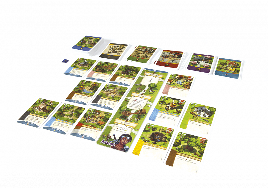Дополнение «Амазонки» добавляют в настольную игру «Поселенцы» новую сторону, теперь игроки смогут поставить империю могучих воительниц! Особенность «Амазонок» вносит в игру новую механику – колодостроительство. Оно позволяет добавлять или убирать карточки из их имперской колоды, меняя ее прямо во время игры!