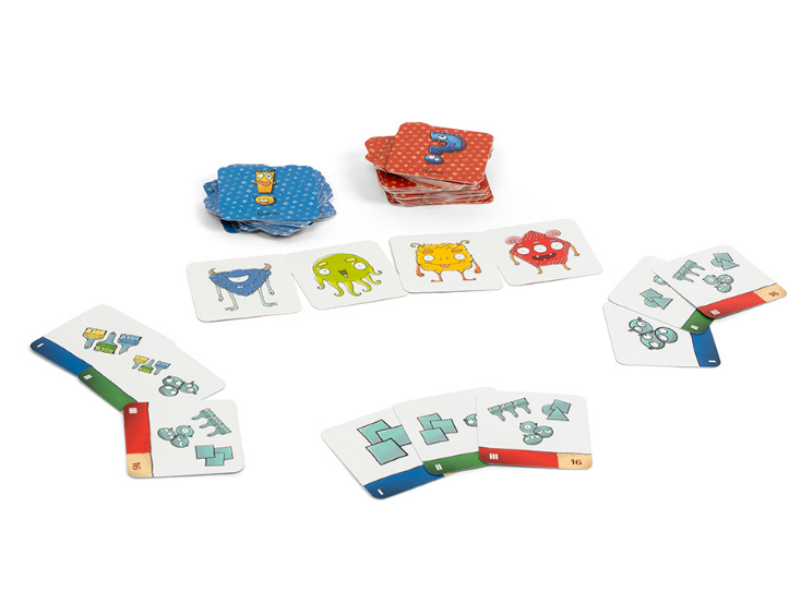 3.Как только один из игроков видит трёх или больше монстриков, которых согласно заданию можно объединить, он громко говорит: "Стоп!" и забирает карточки с выбранными монстриками себе. Затем игра возобновляется.
