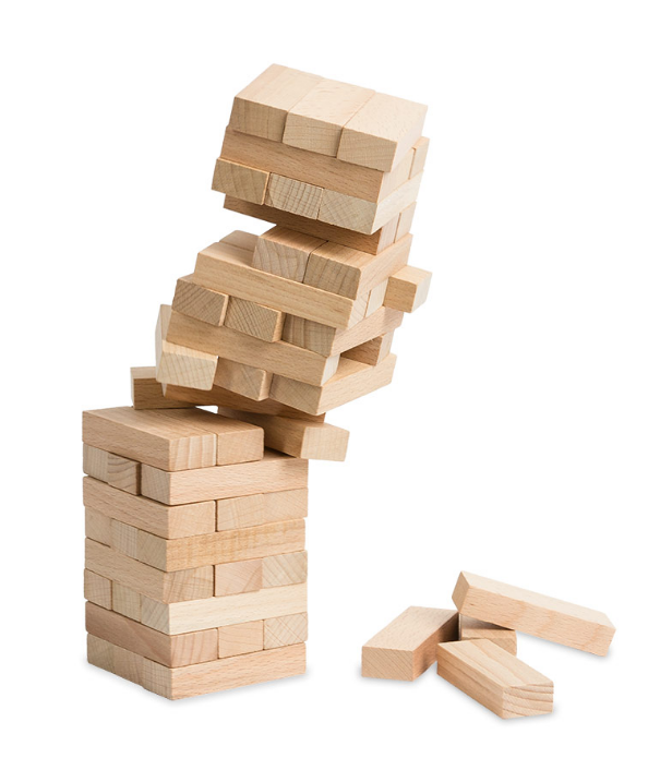 Настольная игра "Башня" - одна из самых популярных настольных игр в мире. Она состоит из 54 деревянных брусочков, которые укладываются в башню. Игроки по очереди вынимают один брусочек из башни, а затем аккуратно укладывают его наверх. С каждым ходом башня становится всё неустойчивее. Цель игроков - не обрушить строение в свой ход, пусть это сделает соперник!