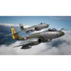Модель самолета Gloster Meteor F8 - это последняя модификация первого британского реактивного истребителя, который принимал участие во Второй Мировой Войне. Самой многочисленной модификацией (всего 1183 машин) был самолёт Метеор F.Mk 8, который совершил первый полёт 12 октября 1948 года. Он имел удлинённый фюзеляж, изменённое хвостовое оперение, дополнительный топливный бак объёмом 432 литра и цельноштампованный фонарь. Дополнительное оборудование включало в себя гироскопический прицел и катапультируемое кресло Martin-Baker. На нём были установлены турбореактивные двигатели "Дервент 8" тягой 1633 кг, что позволяло развивать предельную скорость почти 966 км/час.