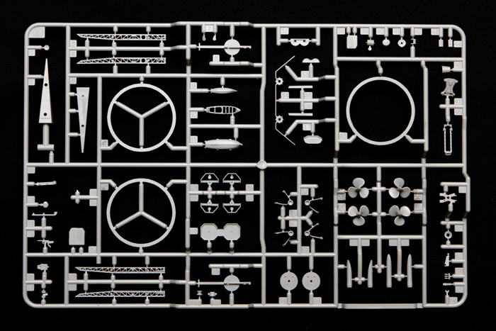 Фототравлёные детали для мачт, межбалубных лестниц, вентиляционных решёток, радара, мачты крана, катапульт и катапультных тележек, различных креплений и проработки множества мелких деталей.